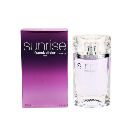 ادوپرفیوم زنانه فرانک اولیور مدل سان رایز عطری است شیرین. این عطر در سال 2010 به بازار عطر و ادکلن عرضه شد. ادوپرفیوم زنانه فرانک اولیور مدل سان رایز،عطری است مدرن و جذاب که شروعی شیرین، شاداب و میوه ای از رایحه تمشک و مرکبات دارد که بسیار خوشبو و نشاط آور است.با گذر زمان حس میوه ای همچنان استشمام میشود و حال با اضافه شدن گل یاس و چوب صندل شیرینی عطر ملایمتر شده و در عوض کمی تلخ و گلدار میگردد تا رایحه ای زنانه و خوشبو شکل گیرد.فرانک الیور سان رایز پخش بو و ماندگاری مناسبی دارد و انتخاب شایسته ای است برای مصرف روزانه در بهار و تابستان.