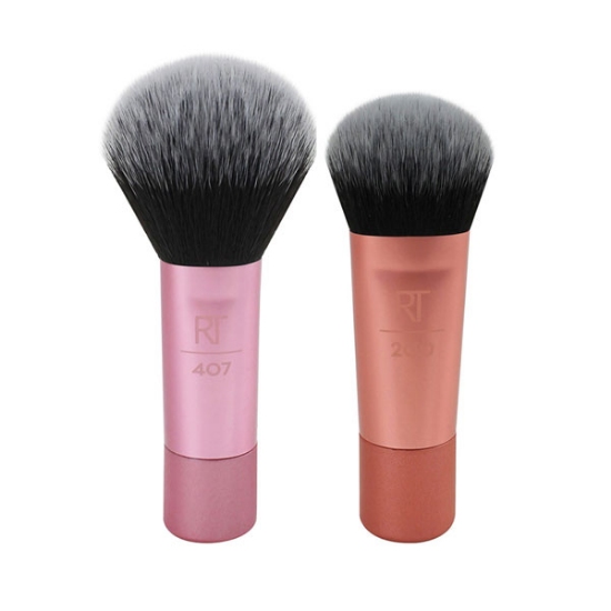 ست براش مینی کرم پودر و رژ گونه ریل تکنیک با سر تختی که دارد برای پخش و فید کردن کرم پودر مناسب می باشد و براش شماره ی 407 با سر گرد بزرگ و موهای بلندی که دارد مناسب برای پخش رژ گونه، پنکیک، برنزر و... می باشد. براش های این ست این امکان را می دهد که به بهترین نحو کرم پودر و سایر مواد آرایشی را بر روی سطح پوست فید کنید.این ست براش با اندازه ی کوچکی که دارد به راحتی قابل حمل و نقل است و برای مسافرت بسیار مناسب می باشد.