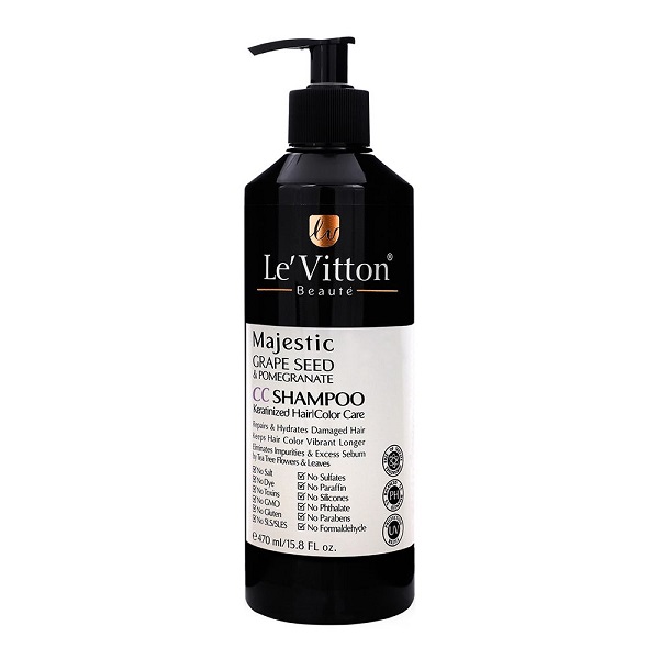 شامپو تثبیت کننده رنگ مو CC لویتون حاوی کراتین و عصاره انار 470 میلی لیتر