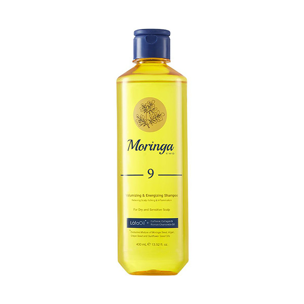 شامپو حجم دهنده و انرژی بخش مورینگا امو 9 پوست سر خشک و حساس حجم 400 میلی لیتر