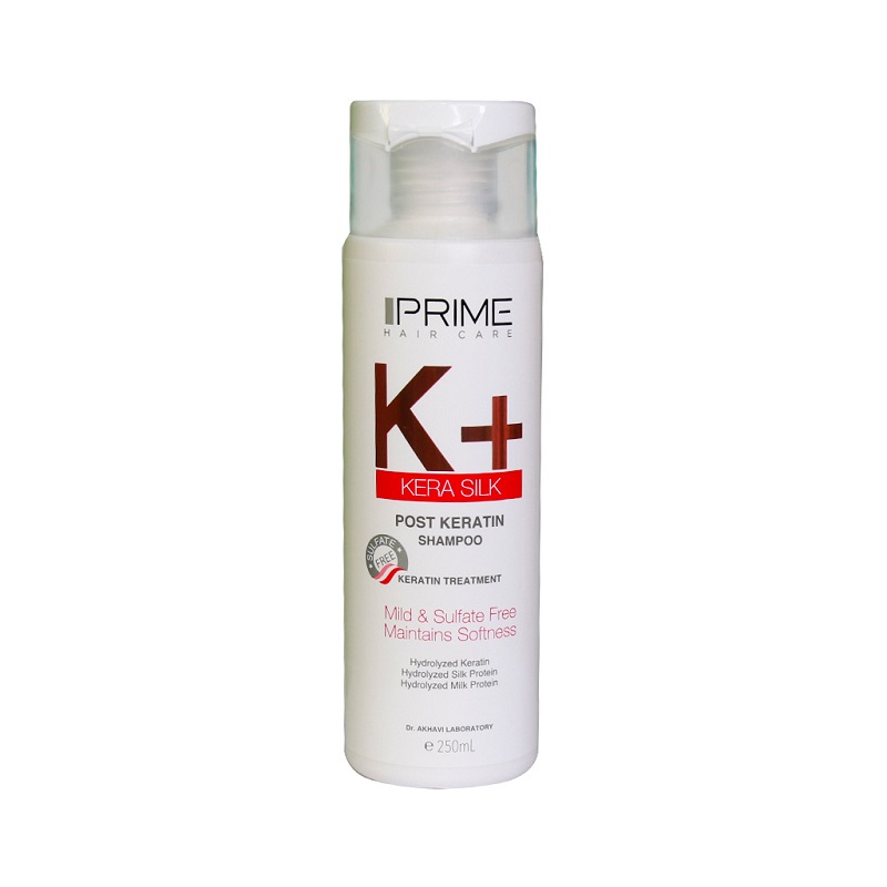 شامپو مو کراتینه +K پریم (Prime K+ Kera Silk Post Keratin Shampoo) یکی از محصولات شرکت پریم ‌‌می‌باشد که مناسب موهای رنگ شده و کراتینه است. این محصول بر روی موهای کراتین شده و رنگ شده اثر مخرب ندارد و به خوبی از رنگ مو و کراتین مو محافظت می‌کند و در عین حال تمام آلودگی‌های مو و پوست سر را به صورت کامل پاک می‌کند. شما با خرید شامپو فاقد سولفات موهای کراتینه شده پریم می‌توانید از موهای رنگ شده و کراتینه خود نگهداری و محافظت کنید.