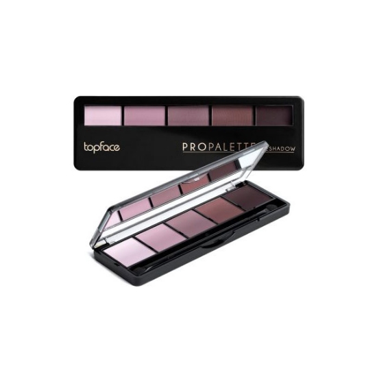 پالت سایه چشم تاپ فیس یک پالت 5 رنگ است که تمام رنگ های آن مات میباشد و همگی شید های مختلف از یک رنگ میباشند و تنوع رنگی در پالتهای مختلف اعمال شده است به این صورت که این پالت دارای 10 رنگ دیگر دارد. سایه های این پالت نرم و پودری میباشند. این پالت دارای ماندگاری بالایی می باشد و به راحتی پشت پلک پخش میشود،بافت مخملی ایجاد میکند و زیبایی چشم را بیشتر می کند. سایه های این پالت پیگمنت خوبی دارند و برای افرادی که در سایه زدن مبتدی هستند بسیار مناسب است.
