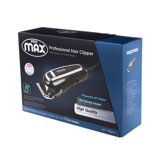 ماشین اصلاح پرومکس مدل 1100Pro برای استفاده در آرایشگاه های مردانه تولیذ شده است و هدف اصلی آن کوتاه کردن موهای ضخیم است. این دستگاه با برق شهری 220 ولت کار میکند و دارای 5 درجه قابل تنظیم تیغه روی دستگاه است. جنس تیغه ها از نوع ضد زنگ است و موهای خیس را نیز میتواند برش دهد و همچنین قدرت تیغه ها به حدی بالا است که قادر به برش ضخیم ترین موهای مردانه میباشد و با روغن کاری مداوم طول عمر و کیفیت آن را نیز میتوانید افزایش دهید.