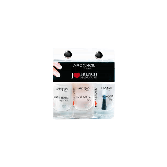 کیت فرنچ مانیکور آرکانسیل دارای ۳ عدد لاک جهت فرنچ و چسب ناخن می‌باشد. این محصول به خوبی ناخن شما را به رنگ دلخواه درآورده دارای دوام و ماندگاری بالا می‌باشد. ۳ عدد محصول موجود در این کیت آستر سفید (Liner Blanc) با نام نیویورک، رنگ صورتی (Rose Pastel) با نام پاریس و پوشاننده نهایی (Top Coat) با نام توکیو می‌باشد.