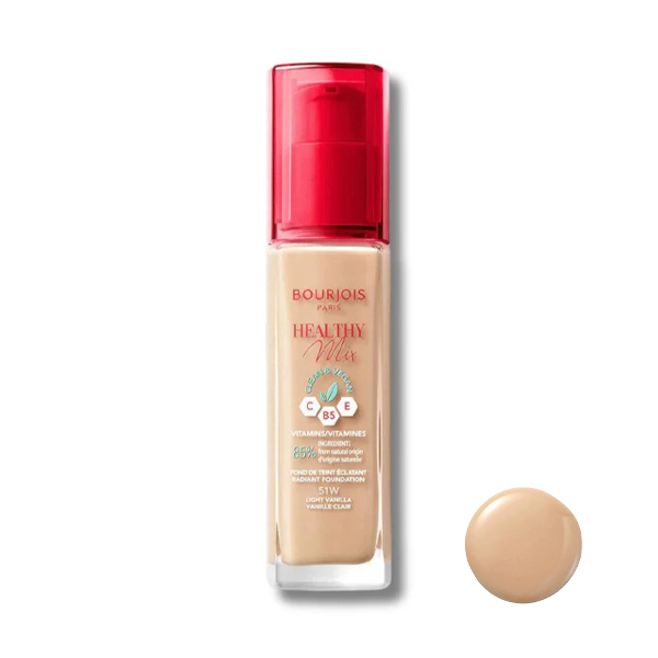 کرم پودر بورژوا مدل Healthy Mix شماره 51، حاوی ترکیبی منحصر به فرد از ویتامین ها جهت افزایش شفافیت پوست و رفع فوری نشانه های خستگی از چهره است همچنین این محصول با قابلیت آبرسانی به لایه فوقانی اپیدرم، رطوبت پوست را تا ۲۴ ساعت حفظ می نماید همچنین این محصول قرمزی و تیرگی های پوست به صورت به طور قابل ملاحظه ای در تمام طول روز بر طرف می نماید.