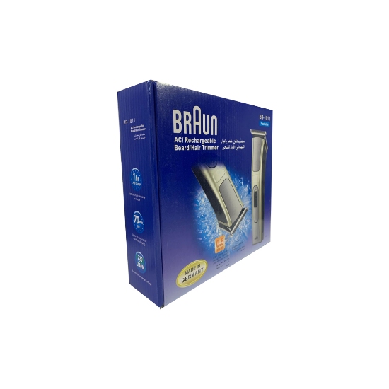 ماشین خط زن طرح براون شماره 1011، دارای سری‌ برش مستقیم است که به کوتاه کردن موهای صورت با مرزبندی مشخص کمک می‌ نماید. این محصول تیغه‌هایی از جنس استیل دارد که موهای سر و صورت را در اندازه‌های 1 تا 12 میلی‌متر کوتاه می‌کنند. این مدل پس از 60 دقیقه شارژ شدن، به‌مدت 30 دقیقه قابل استفاده است. این ماشین اصلاح داری 4 سری با شماره های 3،6،9،12 نیز می باشد. منبع تغذیه ماشین اصلاح باتری قابل شارژ می باشد.