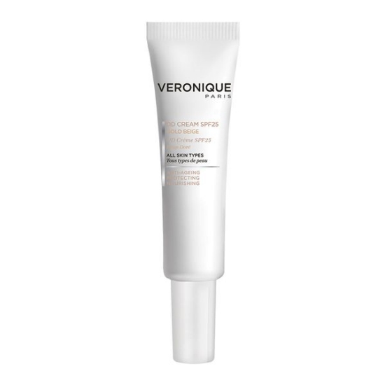 دی دی کرم ورونیک spf25 بژ طلایی حجم 40 میلی لیتر یک کرم همه کاره است که از پوست در برابر پرتوهای فرابنفش محافظت می‌ نماید. این فرآورده خاصیت آنتی اکسیدانی داشته و با رادیکال‌های آزاد موجود در سطح پوست مبارزه می‌ نماید. دی دی کرم ورونیک spf25 بژ طلایی حجم 40 میلی لیتر به سبب فرمولاسیون ویژه خود، رنگ چهره را یکدست نموده و به صورت و دور چشم شفافیت طبیعی می‌بخشد همچنین این دی دی کرم در دو رنگ بژ روشن و بژ طلایی ارائه شده است و می‌توان از آن برای کاهش علائم پیری پوست همچون چین و چروک و شل شدگی استفاده کرد. دی دی کرم یک ترکیب عالی برای روزهایی است که وقت کمی در اختیار دارید و می‌خواهید به صورت همزمان از یک کرم ضد آفتاب، ضد چروک و آبرسان استفاده نمایید.
