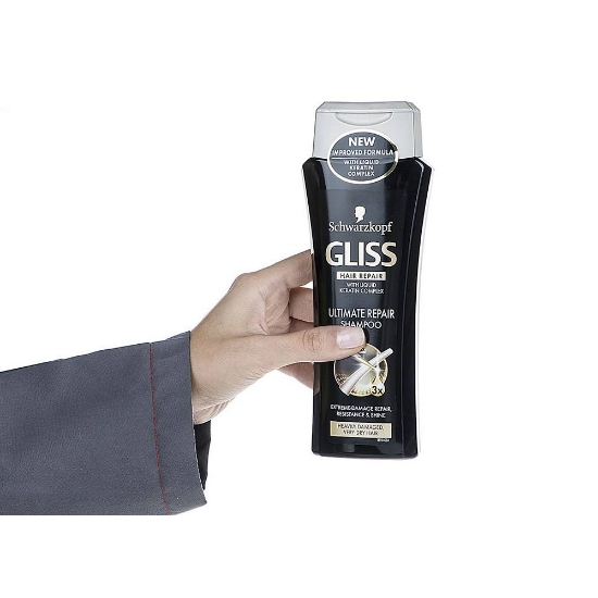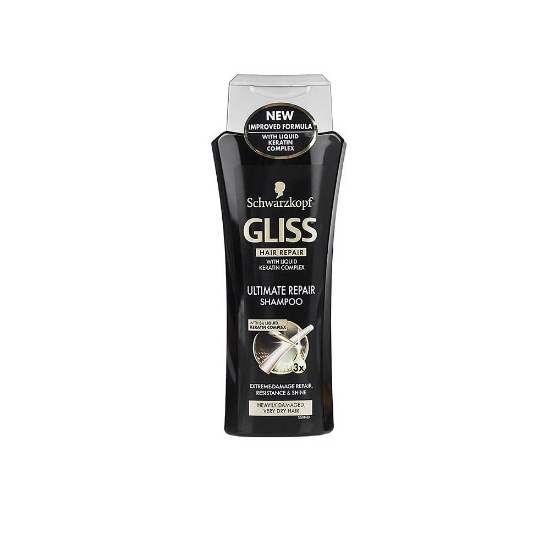 شامپو موی سر برند «گلیس» (Gliss) مدل (Ultimate Repair) شامپویی برای استفاده‌ی بانوان و آقایان است که 250 میلی‌لیتر حجم دارد. شامپو گلیس خاصیت بازسازی موهای آسیب‌دیده را دارد. این شامپو هم موها را درخشان و براق می‌کند و هم موهایی که آسییب‌ دیده‌اند را تا حد زیادی ترمیم می‌کند و بهبود می‌بخشد. تارهای مو بسیار حساس و ظریف هستند که در اثر رنگ کردن‌های مکرر، فرکردن و استفاده از خشک‌کن‌ها و حالت‌دهنده‌های مو ممکن است آسیب ببینند؛ همچنین بافت موی بعضی از افراد خشک است که این نوع موها خیلی زود آسیب می‌بینند و چندشاخه و یا به‌اصطلاح دچار موخوره می‌شود. برای این‌که این آسیب‌ها به مو وارد نشود و یا بتوان از این آسیب‌ها جلوگیری کرد بهتر است از محصولات ترمیمی مو که از کیفیت بالایی برخوردارند استفاده کنید.شامپو بازسازی‌کننده‌ی گلیس حاوی کراتین مایع است که باعث نرمی و درخشان شدن تارهای مو می‌شود. این شامپو تاثیری عالی و بسیار محسوس روی موها دارد که پس از چندبار استفاده این تاثیر را احساس خواهید کرد. محصولات گلیس دارای مجوز از سازمان غذا و دارو هستند و از نظر بهداشتی کاملاً تایید شده و مطمئن هستند.