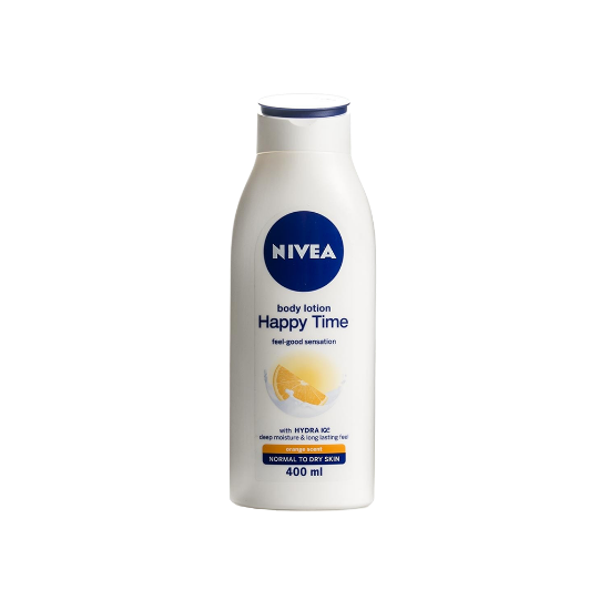 برای نرم و لطیف نگهداشتن پوست بعد از استحمام، استفاده از لوسیون بدن بسیار مناسب است. ترکیباتی که لوسیون های بدن دارند، به پوست کمک می کنند تا تاثیر شوینده هایی مانند صابون بر روی پوست از بین رفته و پوست دچار خشکی و خارش نشود. ضمن اینکه عطر خوشبوی آن ها بدن را تا ساعت ها معطر نگه می دارد. برند خوش نام نیوآ (Nivea) برای علاقه مندان به مراقبت از پوست، لوسیون بدن مدل «Happy Time» را در حجم ۲۵۰ میلی لیتر عرضه کرده است. این لوسیون از دوام بالایی بر روی پوست برخوردار است که سبب می شود مدت زمان بیشتری پوست از خواص آن تغذیه کند. ضمنا این لوسیون دارای رایحه ای ملایم و خوشبو از شکوفه های پرتقال است که بدن را معطر و حس تمیزی را انتقال می دهد.