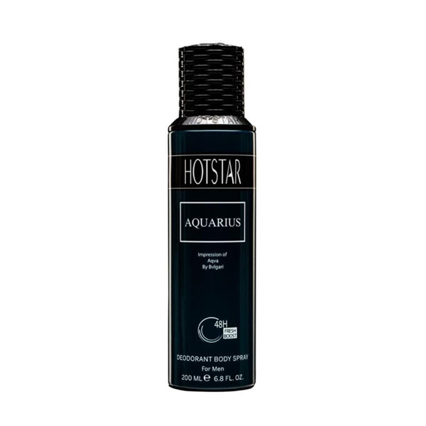 اسپری مردانه هات استار مدل آکوا بولگاری (Aquarius) فراتر از یک اسپری عمل می کند با بیش از 48 ساعت ماندگاری این محصول رایحه ای شبیه عطر BVLGARI – Aqva Pour Homme بولگاری آکوا پور هوم دارد.