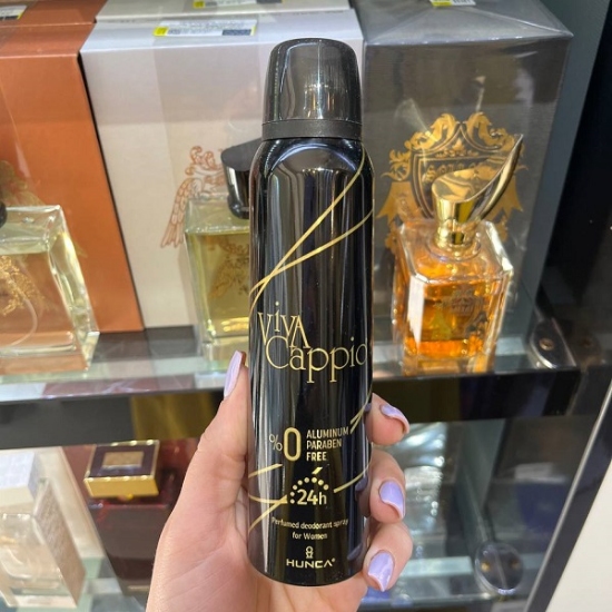 اسپری بدن زنانه ویوا کاپیو مدل کلاسیک دارای رایحه ای ملایم و بطری فلزی مشکی رنگ در میان مردم شناخته شده است. این محصول وارداتی کشور ترکیه بوده بطری اسپری هونکا ویوا کاپیو زنانه رنگی کاملا مشکی دارد، این رنگ در برابر تنوع بالای محصولات خاص بوده و آن را نسبت به انواع دیگر متمایز می کند.