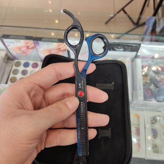 قیچی آرایشگری حرفه ای جگوار پیتاژ یکطرفه است و برای خالی کردن حجمی از موها کاربرد دارد و در فرم دهی و حالت دهی موها بسیار کارساز است. این قیچی آلمانی کاملا کبالتی و ساخت دست است. فولاد ضد زنگ جنس اصلی قیچی بوده که با پوشش نازکی از تیتانیوم همراه است. دسته قیچی دارای انحنای بسیار مناسبی است که کمترین خستگی را متوجه دست ارایشگر نخواهد کرد از نکات قابل توجهی که همیشه باید آن اهمیت داد که قیچی های حرفه ای آرایشگری به هیچ وجه نباید روی زمین افتاده شوند.