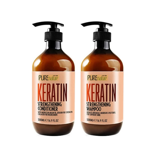 پک کراتین حاوی شامپو کراتینه و ماسک کراتینه پیور نیچر 2 عدد 500 میلی لیتر