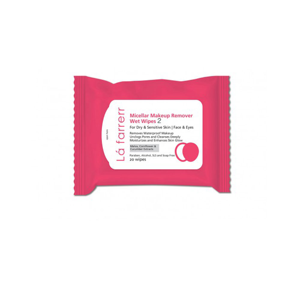 دستمال مرطوب آرایش پاک کن لافارر کد 2 مناسب پوست خشک و حساس 20 عددی