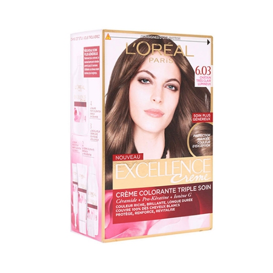 تغییر رنگ مو باعث تغییر کلی در چهره میشود و اگر رنگ جدید، مخالف با رنگ طبیعی موها باشد این تغییر مشهودتر خواهد بود. اثرات منفیای که رنگ مو میتواند بر روی موها بگذارد گاهی باعث میشود موها به شدت آسیب ببینند، به همین دلیل باید رنگ مویی خریداری کرد که علاوه بر تغییر رنگ زیبا به مراقبت از مو نیز بپردازد. شرکت لورآل که در زمینهی تولید محصولات آرایشی و مراقبتی از پوست و مو سابقهی درخشانی دارد، رنگ موهای مدل اکسلنس را به صورت کیت و همراه با مواد مراقبتی ارائه کرده است. در کیت رنگ مو لورآل سرم محافظت کننده برای قبل از رنگ کردن و نرم کنندهی حاوی کلاژن مناسب استفاده پس از رنگ کردن وجود دارد. در ترکیبات این رنگ مو از موادی استفاده شده که بدون نیاز به استفادهی مکرر باعث میشود مو به رنگ دلخواه درآید و به ساختار آن صدمهای وارد نشود. رنگ موی اکسلنس باعث افزایش ۸۵% مو در برابر براشینگ و اتو کشیدن میشود و قدرت بالایی در پوشاندن موهای سفید دارد. کیت رنگ موی اورآل دارای اکسیدانی ۷۲ میلی لیتری و با درپوش و برس است که امکان اضافه کردن رنگ مو و ترکیب آن با اکسیدان در همان ظرف وجود دارد و می توان در حمام و بدون کمک فردی دیگر رنگ را بر روی موها ریخته و با شانهی سر بطری، موها را شانه کرد تا تمام قسمتها پوشش داده شود. رنگهای متوسط مایل به تیرهی اورآل با ترکیبات خاصی که دارند باعث قرمزی و کدر شدن موها نمیشوند و درخشش طبیعی و شفافی را به موها میدهند. رنگ موی شماره ۶/۳۰ اکسلنس تن رنگ طلائی و مایل به مسی دارد و برای افرادی که پوست گندمی و یا تیره دارند و نمیخواهند موهای خیلی روشنی داشته باشند، مناسب است و در فصلهای سرد سال به شاداب نشان دادن چهرهی این افراد کمک میکند.