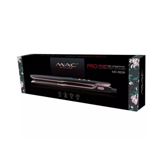 اتومو مک استایلر مدل MC-5529 ، محصولی است با طراحی نوین که دارای تکنولوژی پیشرفته است. این اتو مو قابل تنظیم در 5 دمای مختلف بین 80 تا 250 درجه سانتی گراد می باشد که توسط نمایشگر LED تعبیه شده بر روی دستگاه قابل مشاهده است و از آنجایکه مجهز به سیستم گرمایشی سریع MCH هست به سرعت در عرض 10 ثانیه به دمای مورد نظر خواهد رسید. همچنین با دارا بودن صفحاتی متوسط از جنس نانو سرامیک به موهای شما آسیبی وارد نمی‌‌کند. از مزایای دیگر این محصول می‌توان به پخش یکسان حرارت و عملکرد مناسب آن در حالت‌دهی موها اشاره نمود که مانع سوختن و خشکی موها می شود. همچنین از ویژگی های بسیار خوب این محصول داشتن خاصیت کراتین تراپی آن است و باعث تمایز آن با بسیاری از محصولات مشابه شده است.اتصال کابل برق به دستگاه ، قابلیت چرخش 360 درجه دارد و استفاده از آن را ساده تر کرده است. همچنین اتو موی مک استایلر مدل MC-5529 مجهز به سیستم خاموشی خودکار هست و بعد از 60 دقیقه در صورت استفاده نکردن اتوماتیک خاموش می شود شود. لازم به ذکر است به همراه این اتو مو یک کیف محافظ هم موجود هست در آخر باید گفت این محصول دارای طراحی ارگونومیک همچون وزن مناسب، خوش دست، ظاهری شیک بوده که کاملآ حرفه ای طراحی شده و نه تنها برا استفاده شخصی برا استفاده سالنی (آرایشگاه ها) بسیار مناسب و کاربردی هست.
