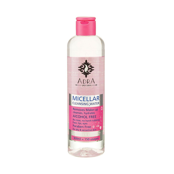 میسلار واتر پاک کننده آرایش پوست خشک و حساس آدرا حجم 300 میلی لیتر
