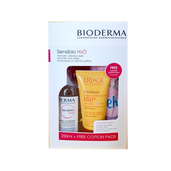 پک ضد آفتاب اوریاژ با محلول پاک کننده بایودرما سنسی بیو با پد پاک کننده دیسکی
