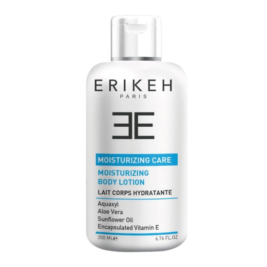 لوسیون مرطوب کننده بدن اریکه که حاوی ترکیباتی نظیر عصاره آلوئه ورا، عصاره روغن آفتابگردان، ویتامین E و آکواکسیل می باشد، سبب رفع خشکی پوست و رطوبت رسانی عمقی و با دوام به پوست می شود.