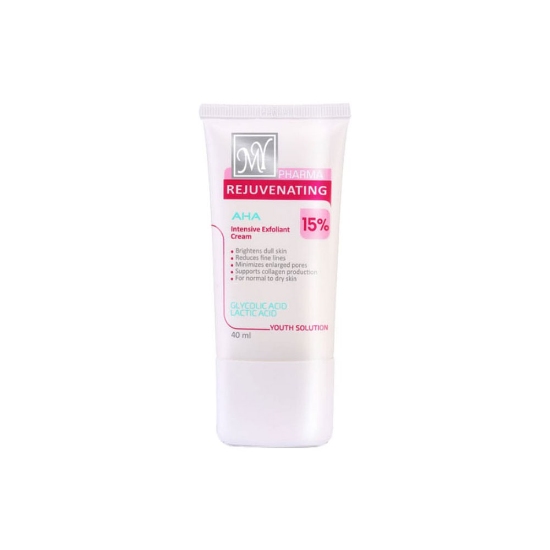 کرم جوان کننده و لایه بردار 15%مای فارما  یا همان آلفــا هیدروکســی اســیدها، چــون بــه طــور معمــول از میــوه هــا بدســت مــی آینــد، بــه نــام اســیدهای میــوه هــم شــناخته مــی شــوند. ماننــد اســید مالیــک کــه از انواع ســیب، اســید ســیتریک کــه از انــواع مرکبــات و اســید گلیکولیــک کــه از ســاقه نیشــکر گرفتــه مــی شــوند. عـلـاوه بــر ایــن AHA، از تخمیــر محصــولات طبیعــی نیــز بدســت مــی آیــد. مثــلا اســید لاکتیک از شــیر تــرش و اســید تارتاریــک از انگــور تخمیــر شــده اســتخراج مــی شــود. از آنجایــی کــه آلفــا هیدروکســی اســیدها از منابــع طبیعــی حاصــل  مــی شــوند، محبوبیــت زیــادی دارنــد. کــرم هــای جــوان کننــده یــوث سلوشــن مــای فـــارما بــا بهـــره منــدی از خــواص فــوق العــاده ی اســیدهای میــوه و بافــت ســبک، روند لایــه بــرداری طبیعــی و جــدا ســازی ســلول هــای مــرده از ســطح پوســت را تقویــت مــی کننــد. ایــن محصــولات عــلاوه بــر آبرســانی عمیــق و برطــرف کــردن خشــکی، انــدازه منافــذ بــاز پوســـت را نیــز کاهــش مــی دهنــد و بــا بهبــود ظاهــر خشــک و تیــره، پوســتی نــرم و صــاف را بــه ارمغــان مــی آورنــد. همچنیــن بــا تحریــک ســاخت کلاژن، خطــوط ظریــف، چیــن و چــروک را کاهــش داده و موجــب روشــنی و ســلامت آن مــی شــوند.