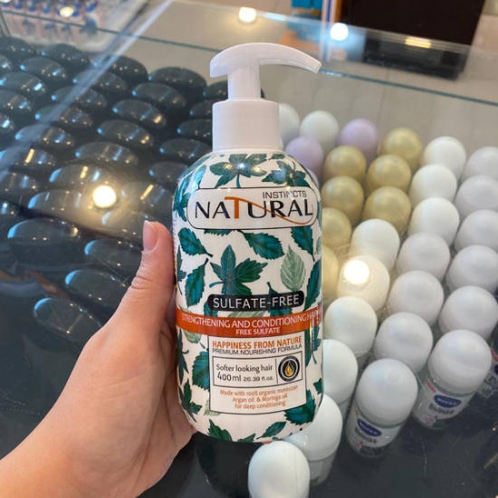 ماسک 100% ارگانیک تغذیه کننده و ترمیم کننده حاوی مقادیر فرآوان کراتین،آرگان، آلوئه‌ورا و جوجوبا نچرال اینیستینکس نه تنها تمام ویژگی های ماسک های مراقبت کننده مو نزیر انواع فیلترهای UV، ترکیبات آبرسان و محافظت کننده مو را دارا می باشد بلکه به واسطه فرمولاسیون غنی از ترکیبات گیاهی مغذی به کار رفته در فرمولاسیون آن عمیقا به تغذیه، ترمیم و بازسازی لایه های مو می پردازد.