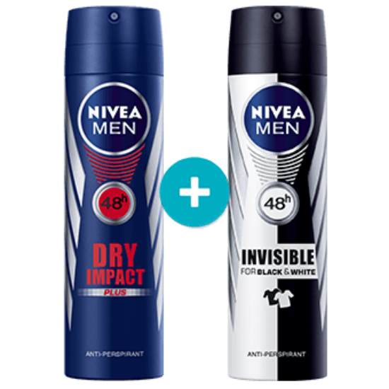 پک دئو اسپری مردانه نیوآ (درای + بلک اند وایت) Nivea Invisible Black white And Dry Impact Spray For Men Pack Of 2