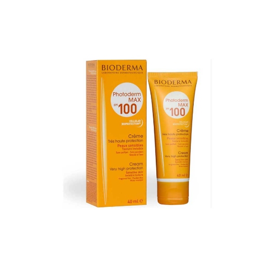 کرم ضد آفتاب مدل max بایودرما SPF 100 درکرم فتودرم مکس بیشترین اثرضد UVB به همراه قوی ترین فیلتر UVA که هرکدام به تنهایی پوست را از اشعه های موردنظر محافظت می کنند ، وجوددارد که شمارا کاملا" درمقابل آفتاب سوختگی و پیری زودرس و..... ایمن می کند. به وسیله کمپلکس اختصاصی Bio Protection ، از عمق سلول های پوستی شما محافظتی مطلوب انجام می شود. ترکیب فوق العاده سبک کرم فتودرم مکس به پوست شما حسی فوق العاده نرم و لطیف می دهد. کاملا" بی رنگ است و به راحتی روی پوست پخش می شود و به هیچ وجه چربی روی پوست شما باقی نمی گذارد و پوست شما را سفید نمی کند. کرم فتودرم مکس غیر کومدون زا و مقاوم درمقابل آب و نور می باشد. بدون عطر با تحمل پذیری بالا.