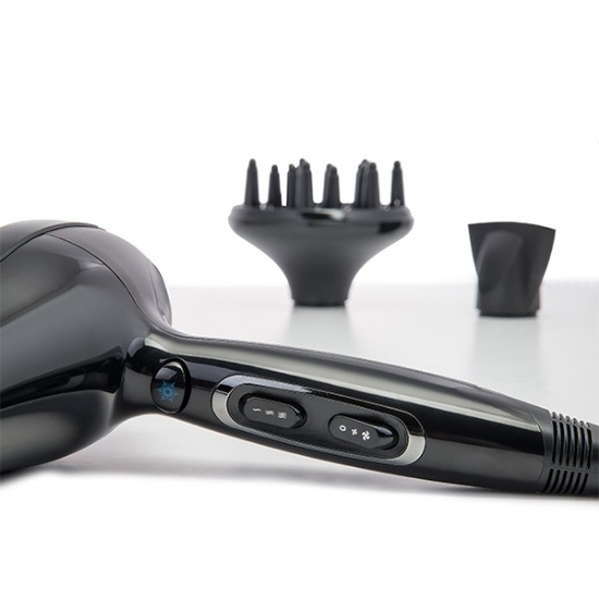 پایین‌ترین دکمه هم امکان تنظیم سرعت باد در دو حالت مختلف را در اختیار شخص قرار می‌دهد. AC5999 دو متمرکز‌کننده دارد که یکی از آن‌ها باریک‌تر است و باد را با فشار بیشتری به بیرون هدایت می‌کند. علاوه‌بر این یک دیسپانسر برای حجم دادن و ایجاد موج در موها همراه سشوار ارائه شده است. به‌طور حتم انتقال حرارت بالا به مو، اگر به‌صورت مداوم صورت گیرد موجب خشکی، شکنندگی و آسیب‌دیدگی مو می‌شود که امری اجتناب‌ناپذیر است، اما وجود فناوری تولید یون این آسیب‌دیدگی را به‌حداقل رسانده و موجب شفافیت و نرمی هرچه بیشتر موها می‌شود. ضمن اینکه وجود یون باعث خشک‌شدن سریع مو تا ۵۰ درصد می‌شود. طبق گفته‌ی شرکت سازنده، این سشوار تا ۹۰ درصد از وز‌شدگی موها کم می‌کند و باعث می‌شود ظاهر موها درخشان‌تر به‌نظر برسد.