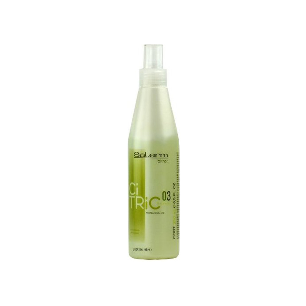 اسپری بازسازی و ترمیم کننده مو سیتریک سالرم کازمتیکس محصولی از برند اسپانیایی سالرم کازمتیکس است. این محصول بازسازی کننده موهای آسیب دیده پس از رنگ کردن مو است. در ترکیبات موثر موجود در این اسپری مو آنتی اکسیدان قرار داده شده است که خاصیت درمانی دارد؛ اثر درمانی آنتی اکسیدان خارج کردن اکسیژن از رنگ مو است همین امر موجب تثبیت رنگ می گردد. همچنین به دلیل وجود کمپلکس اسیدهای میوه و پرو ویتامین B5 باعث ترمیم کننده و بازسازی کننده مو می گردد و از خشکی شدن موها محافظت می کند. اگر پس از استفاده از شامپو و نرم کننده مو، به نرمی دلخواه خود نرسیدید این محصول آخرین مرحله برای جلوگیری از شکنندگی و آسیب به مو است، شانه پذیری مو را به آسانی فراهم می سازد و موهای آسیب دیده را نرم، لطیف و زیبا می سازد بدون اینکه حالت چرب بر روی مو ایجاد کند.