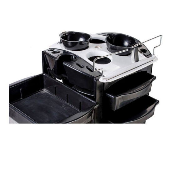 در هر آرایشگاه و سالن زیبایی حداقل به یک میز ترولی جهت گذاشتن لوازم نیاز است. میز ترولی آرایشگاهی مدل SN-2016 انتخاب مناسبی میتواند باشد. ترولی آرایشگاهی مدل SN-2016 دارای شش کشو جهت گذاشتن لوازم میباشد. طبقه بالایی ترولی مدل SN-2016 جایگاهی جهت گذاشتن لوازمی چون بابلیس،سشوار و سایر لوازم آرایشگاهی دارد. جنس کشوهای و بدنه این محصول از پلاستیک تفلون ضد خش و نشکن است. این محصول به سفارش سالن ما به همراه یک سال ضمانت و 10 سال خدمات پس از فروش به مشتریان ارائه می شود .
