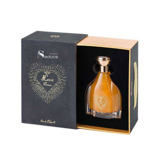 ادو پرفیوم زنانه لاو Seduce 100ml، در سال 2017 معرفی شده است. این ادوپرفیوم با توجه به پیگمنتهای طلایی که دارد بسیار جذاب و دوست داشتی میباشد. Love for femme با توجه به بوی شرقی، شیرین، تند و گرمش برای شبهای سرد و طولانی پاییزی و زمستانی پیشنهاد میشود. طراحی و فرمولاسیون این عطر توسط یکی از بهترین طراحان تیم سدیوس انجام شده است. در بطری با رنگ طلاییاش بهخوبی روی شیشه سوار شده است.