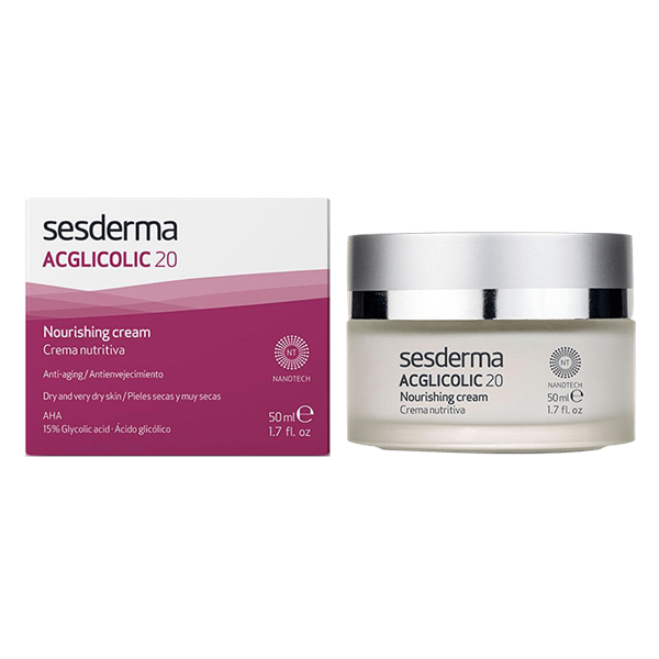 کرم مغذی سسدرما ای سی گلیکولیک ۲۰ حاوی اسید گلیکولیک ۱۵% به فرم آزاد و لیپوزومی شده است. این کرم بازسازی و مرطوب‌کننده پوست‌های خشک و دهیدراته است که لطافت و کیفیت خود را از دست داده‌اند.