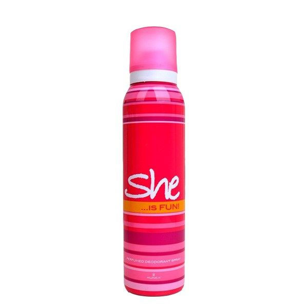 اسپری زنانه شی مدل Fun با حجم 150 میلی‌لیتری محصول کشور ترکیه است. اسپری شی ایز فان با بوی شیرینش، برای مصارف روزانه‌ی خانم‌ها بسیار مناسب به نظر می‌آید. نکته‌ی اصلی درباره‌ی این اسپری، قابلیت استفاده‌ی آن در تمامی فصول سال است.