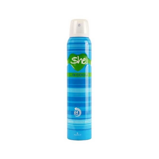 برای روزهای داغ تابستان میتوانید از یک اسپری خنک با بوی گل و میوههای تازه استفاده نماییید. یکی از این اسپریها «کول» (Cool) نام دارد. دئودورانت 200 میلیلیتری She Is Cool محصولی از برند ترکیهای و نام آشنای «شی» (She) می باشد. اسپری شی ایز کول با بوی خنکش، برای مصارف روزانهی خانمها بسیار مناسب به نظر می آید همچنین نکتهی اصلی دربارهی این اسپری خوش بو کننده بدن، قابلیت استفادهی آن در تمامی فصول سال به خصوص تابستان می باشد.
