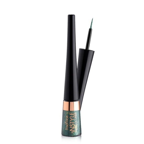 خط چشم متالیک رنگی تاپ فیس، خط چشم رنگی و براق است و درخشندگی مانند فلز دارد، به همین علت به این مدل متالیکی میگوند. خط چشم براق تاپ فیس حاوی ویتامین E است که رطوبت مژه ها را حفظ میکند. این خط چشم پخش شدگی ندارد و بطور یکدست پشت پلک باقی میماند. همچنین خط چشم براق تاپ فیس ماندگاری خوبی داشته و تمام روز بر روی پلک باقی میماند. با این خط چشم میتوانید یک خط چشم یکدست بکشید.