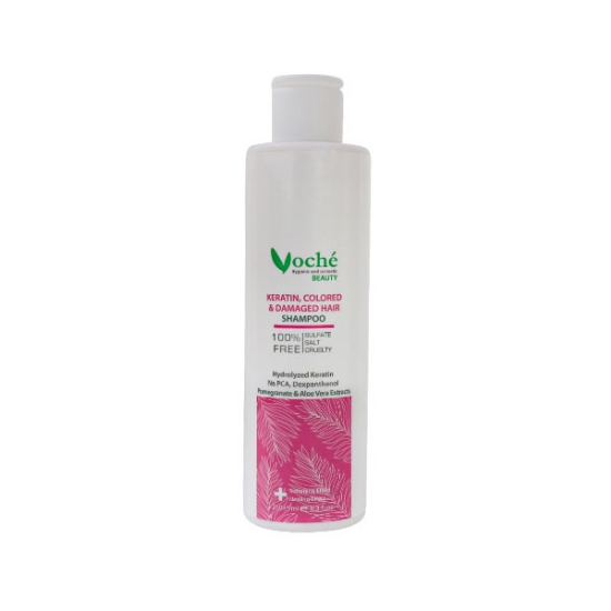 شامپو کراتینه وچه دارای فرمولاسیون اختصاصی جهت حفظ رنگ و کاهش اثرات مخرب دکلره و رنگ مو است. کراتین موجود در این محصول سبب آبرسانی عمیق و موثر مو میشود. این شامپو حاوی بیوتین، ویتامینهای A،E و B۵ است که سبب کاهش ریزش مو و تقویت فولیکول آن شده و از طریق فیلتر UV و عصاره انار به تثبیت رنگ مو با کاهش اثرات نور خورشید بر روی موهای رنگ شده میپردازد. این محصول فاقد مواد مضر سولفات، نمک، پارابن، سیلیکون، گلوتن، پروپیلن گلیکول و دایمتیکون است. شامپوهای فاقد سولفات شویندگی بهتر و کف کمتری دارند.