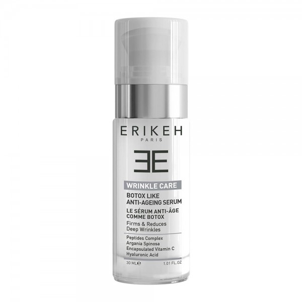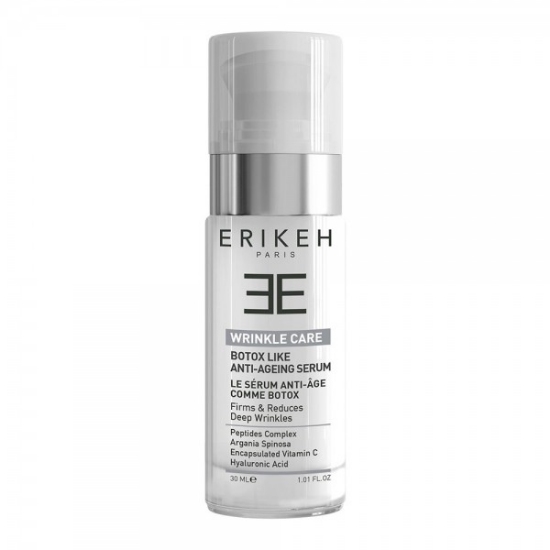 سرم ضد چروک شبه بوتاکس اریکه فرموله شده است تا پوست شما را از آثار افزایش سن نجات دهد و طراوت، شفافیت و لطافت آن را احیا کند. پوست در برخورد با عوامل محیطی مانند آلودگی و آلاینده‌های هوا، محصولات آرایشی، شویند‌های قوی و حتی آب سنگین دچار تغییر و افزایش سن می‌شود. بنابراین، همواره باید با استفاده از ترکیبات مغذی، آبرسان و جوان کننده از سلامت آن محافظت کرد. سرم ضد چروک اریکه حاوی ویتامین C و کمپلکس بازسازی کننده است که پوست را تقویت، مرطوب و تغذیه می‌کنند و با تحریک روند بازسازی پوست، چین و چروک و لکه‌های پوستی را از بین می‌برند. ترکیبات سرم ضد چروک اریکه افزایش تولید الاستین و کلاژن به عنوان ماده همبند سلول‌های پوستی و پروتئین حیاتی برای سلامت و جوانی پوست را تحریک می‌کنند. به این ترتیب، در جوانسازی، بازسازی و بهبود طراوت و شادابی پوست موثرند.