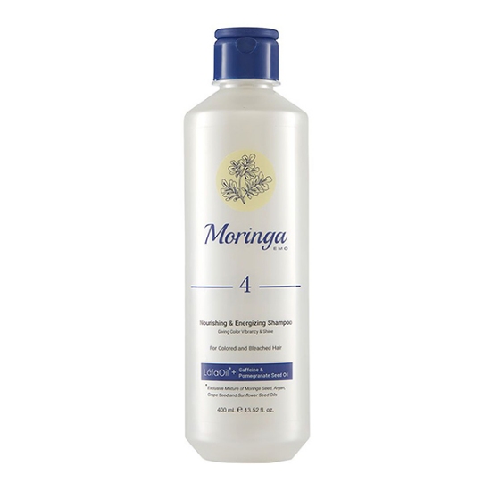 شامپو مغذی و انرژی بخش 4 مورینگا امو مناسب موهای رنگ شده و دکلره حجم 400 میلی لیتر