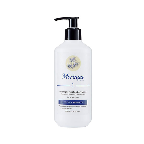 لوسیون بدن فوق سبک و آبرسان مورینگا امو شماره 1 مناسب انواع پوست حجم 300 میلی لیتر