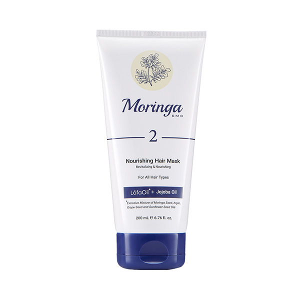 ماسک مو تغذیه کننده مورینگا مناسب انواع مو کد 2 با تامین مواد مغذی، باعث ترمیم و بازیابی خاصیت کشسانی تارهای مو شده و با افزایش نرمی و لطافت تارهای مو، موجب رفع گره و تسهیل شانه‌خوری موها می‌گردد.