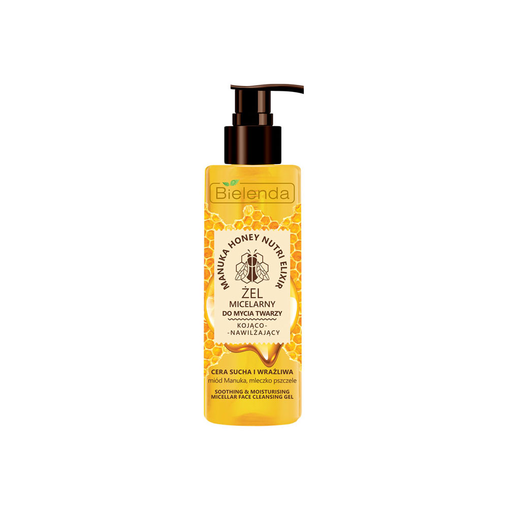 شوینده میسلار ژل آبرسان صورت حاوی اکسیر عسل مانوکا بییلندا، شوینده میسلار ژل محصول منحصر به فردیست که به آرامی و بسیار مؤثر پوست خشک و حساسی که نیاز به مراقبت و رسیدگی دارد و بسیار ظریف و حساس است را تمیز و شاداب میکند. فرمول استثنایی آن متشکل از ترکیب خاص عسل مانوکا که ناخالصیهای پوست را به سرعت پاک میکند و پوست را برای مراحل بعدی مراقبت آماده مینماید. پوست را به خوبی تمیز، شاداب، نرم و آبرسانی میکند و حس نامطلوب ناراحتی و کشیدگی آن را از بین میبرد. این شوینده حاوی ترکیبات بسیار با ارزش مانند عسل موناکو و ژل رویال است.