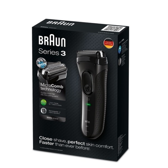 ریش تراش «۳۰۰۰s» ساخت شرکت براون (Braun) با داشتن سری فویلی طراحیشده با تکنولوژی «MicroComb» با هر بار حرکت روی صورت، موهای بیشتری را قطع میکند و به این ترتیب سرعت اصلاح بیشتر شده و نتیجهی اصلاح هم رضایتبخشتر میشود. سری ماشین اصلاح دو بخش فویلی و یک تریمر در میان آنها دارد که هر سه در جای خود قابلیت حرکت عمودی دارند و در تماس با پوست، مخصوصاً برای نقاط انحنادار صورت مثل چانه و زیر گردن، این انعطافپذیری موجب اصلاح راحتتر این نقاط میشود. سریهای فویلی دارای طراحی خاص لانه زنبوری موسوم به «SensoFoil» هستند که باعث میشوند تیغهها با قطع موهای هرچند کوتاه موجب اصلاحی از ته شوند. تریمر میانی با تکنولوژی انحصاری براون، حتی موهای خوابیده ی زیر گردن را نیز بلند کرده و قطع می کند. ماشین اصلاح ۳۰۰۰s دارای باتری قابل شارژ است که استفاده از آن را راحتتر میکند. باتری دستگاه برای شارژ کامل به ۱ ساعت زمان نیاز دارد و پس از آن به مدت ۴۵ دقیقه میتوان به شکل بیسیم از دستگاه استفاده کرد.