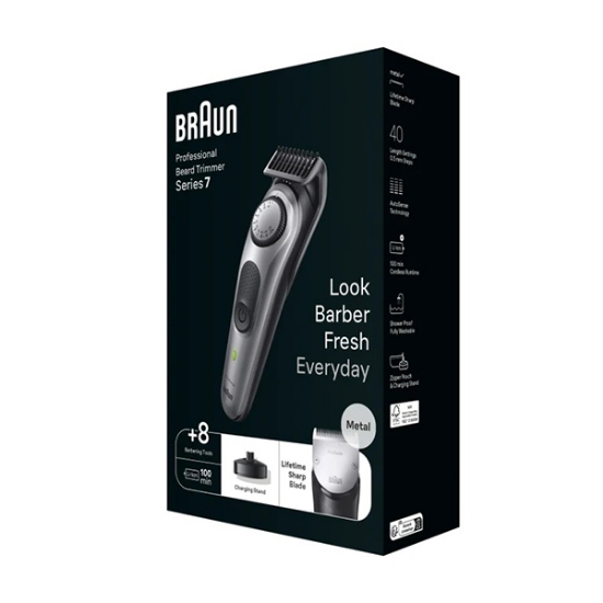 با پماشین اصلاح مدل BT7420 براون سری 7 بهترین نتایج را در خانه بدست آورید. این محصول دقت حرفه ای و کنترل صد درصدی روی اصلاح و استایل ریش و سر با تریمر BT7420 براون را برای شما به ارمغان می آورد. پیرایشگر حرفه ای براون مدل BT7420 برای استایل ریش و اصلاح سر و استفاده شخصی در منزل فراتر از انتظار شما عمل می کند. همچنین کارایی عالی برای اصلاح ریش، کوتاه کردن مو و آرایش موی سر دارد. با این مجموعه دیگر نیازی به آرایشگاه و یا هیچ وسیله دیگری برای اصلاح سر و استایل ریش ندارید. روز را با بهترین استایل خودتان شروع کنید.