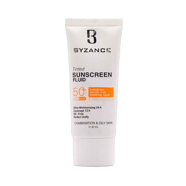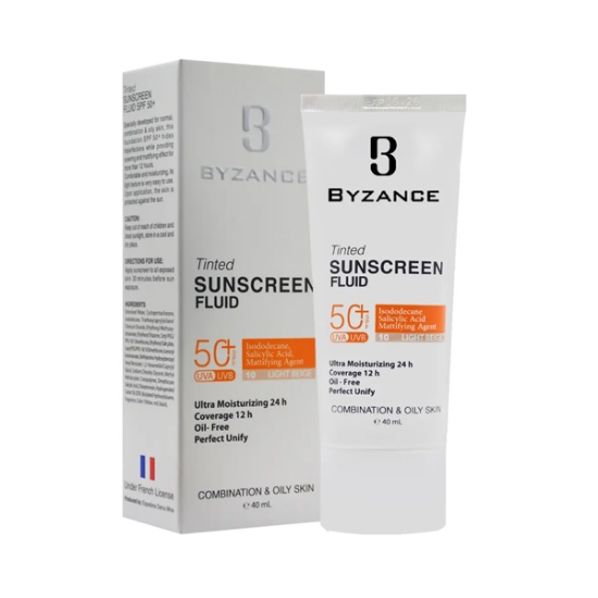 باید بدانید که پوست ما در تمامی فصول نیاز به مراقبت دارد. شما باید از بهار تا زمستان، برای محافظت از پوست خود از محصولات ضد آفتاب استفاده نمایید تا از تاثیرات مضر نور خورشید بر پوست در امان بمانید. فلوئید ها و کرم های ضد آفتاب را در تمامی نواحی پوست صورت خود استفاده کنید تا از ابتلا به سرطان پوست، آفتاب سوختگی و پیری زودرس جلوگیری نمایید. فلوئید ضد آفتاب رنگی SPF 50 بیزانس مناسب پوست چرب و مختلط محصولی بی نظیر از برند فرانسوی بیزانس است که در اینجا به شما معرفی می کنیم. این فلوئید دارای محافظت کننده در برابر اشعه UVA و UVB می باشد و به دلیل آنکه پس از استفاده مات کنندگی کامل پوست را در پی دارد بهترین انتخاب برای پوست های چرب است. استفاده از این محصول به رفع آکنه و پیشگیری از ایجاد جوش کمک می کند و همچنین لک های ناشی از تاثیرات آفتاب را کاهش می دهد. فلوئید ضد آفتاب بیزانس رطوبت رسان قوی با ماندگاری بالا بوده و در برابر تعریق مقاوم است. این محصول دارای رنگ بوده و این فلوئید سبک ترین ضد آفتاب کرم پودری با قابلیت جذب بالا به دلیل عدم استفاده از روغن های سنگین و کومدوژنیک می باشد. استفاده از این محصول برای دور چشم بلامانع است و فاقد چربی و ضد حساسیت می باشد.
