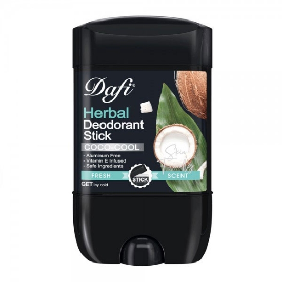 کرم دئودورانت استیکی دافی مدل Coco-Cool خنک کننده و کنترل کننده بوی بد ناشی از تعریق و فاقد آلومینیوم مناسب انواع پوست‌ها است.