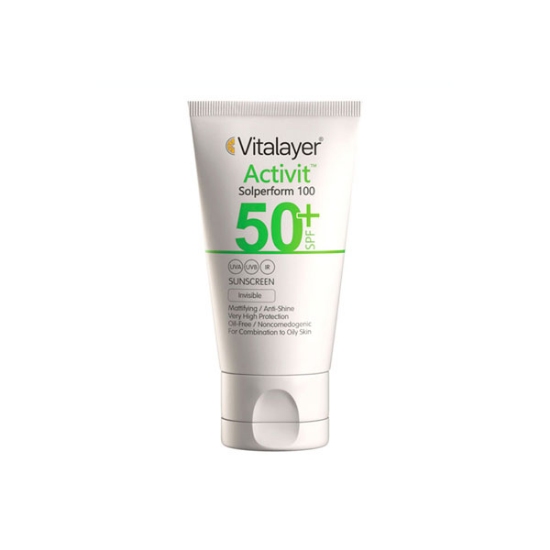 کرم ضد آفتاب بی رنگ ويتالير SPF50 مناسب پوست چرب