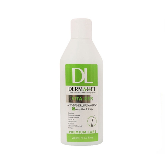 شامپو بدون سولفات ضد شوره درمالیفت مدل VITA-KER مناسب موهای چرب حجم 200 میلی لیتر