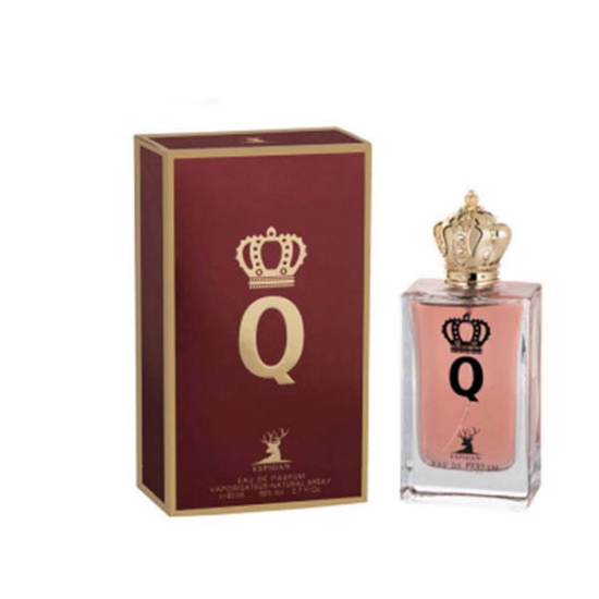 بطری این عطر، طراحی بسیار شیک و جذابی دارد. شیشه شفاف بطری، امکان مشاهده مایع طلایی رنگ عطر را فراهم میکند و حرف Q بزرگ و مشکی رنگ روی بطری، نمادی از قدرت و زنانگی است. درپوش طلایی رنگ بطری نیز با طراحی تاج مانند خود، به این عطر جلوهای سلطنتی بخشیده است.