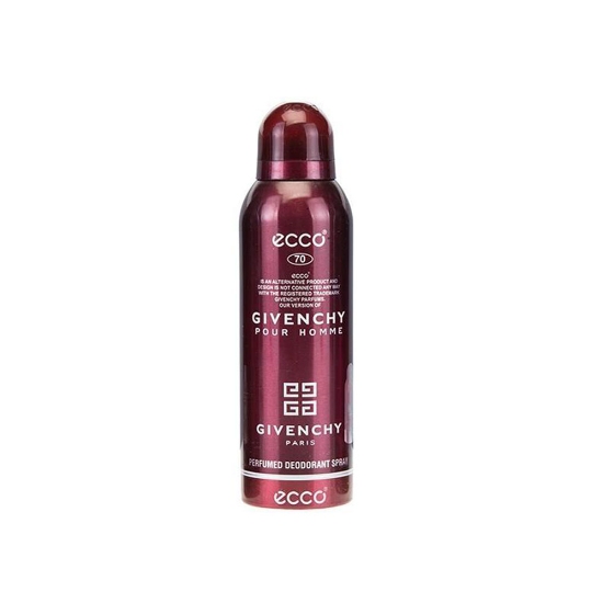 اسپری مردانهی اکو حجمی معادل 200 میلیلیتر دارد و تا مدتی نهچندان کوتاه میتوان از آن استفاده کرد. اکو اسپریای معمولی است که جهت خوشبوکردن، باطراوت شدن و همچنین جلوگیری از بوی نامطبوع بدن و لباسهای شما میتواند مورداستفاده قرار بگیرد. مدل «Givenchy Pour Homme» بهطور تقریبی دارای رایحهای از همین مدل عطر است که اگر عطر و اسپری را باهم استفاده کنید رایحهی ماندگارتری خواهید داشت. اگرچه اسپری ماندگاری کمتری نسبت به عطر دارد اما نکتهی مثبتش حمل آسان آن است که خیلی راحت میتوان آن را باخود به هرجایی برد و مورد استفاده قرار داد. اکو دارای الکل است که پوست را ضدعفونی میکند و پخش بوی بهتری خواهد داشت و تا حدود 24 ساعت ماندگاری و دوام دارد. اکو دارای در و فاقد قفل است که استفادهی بسیار آسانی هم دارد. اسپری مردانهی اکو دارای شماره مجوز بهداشت از سازمان غذا و دارو است که کاملاً بهداشتی و تاییدشده محسوب میشود.