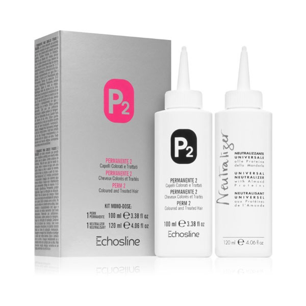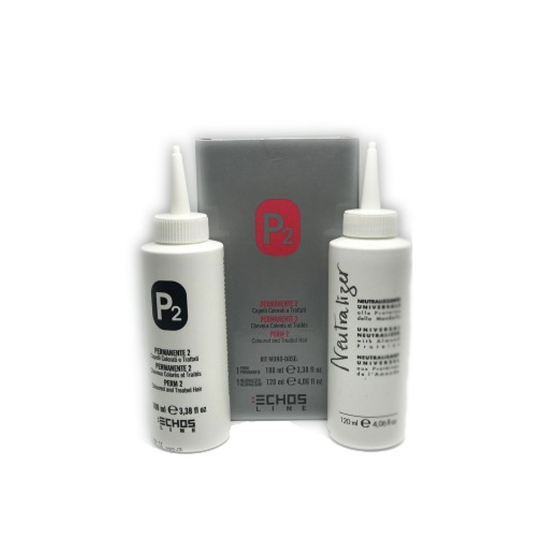 استفاده از مواد فر مرغوب تضمین کننده ی زیبایی و سلامت مو شما است. کیت مواد فر ECHOSLINE P2 مخصوص موهای رنگ شده و آسیب دیده می باشد و یک محصول فوق العاده برای فر کردن دائم مو است. این محصول حاوى عصاره رزمارى، گزنه، قاصدک و کاسنی است که از موهای شما به طور کامل محافظت کرده و فرهایی زیبایی را برای شما به ارمغان می آورد. توجه کنید که استفاده از این محصول نیاز به تخصص و تجربه دارد و مخصوص استفاده افراد حرفه ای است.